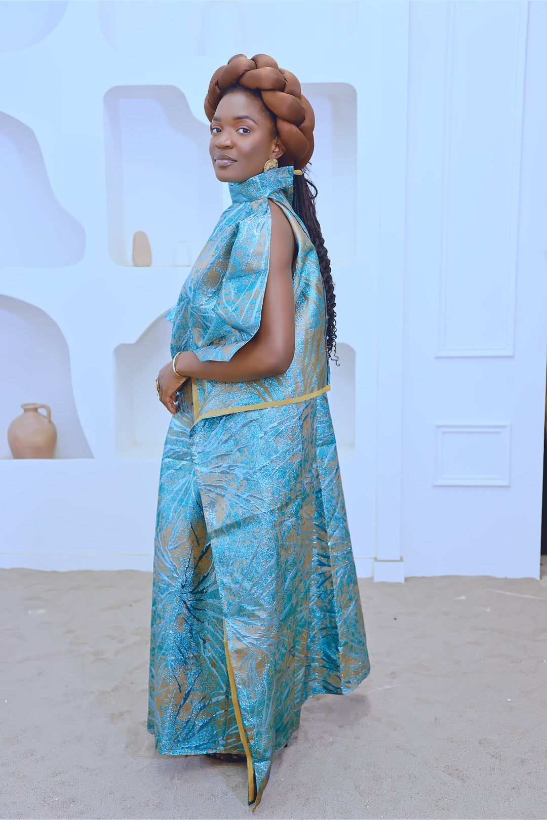 Made of high quality brocade fabric, a turtle neck and slit on the sleeves