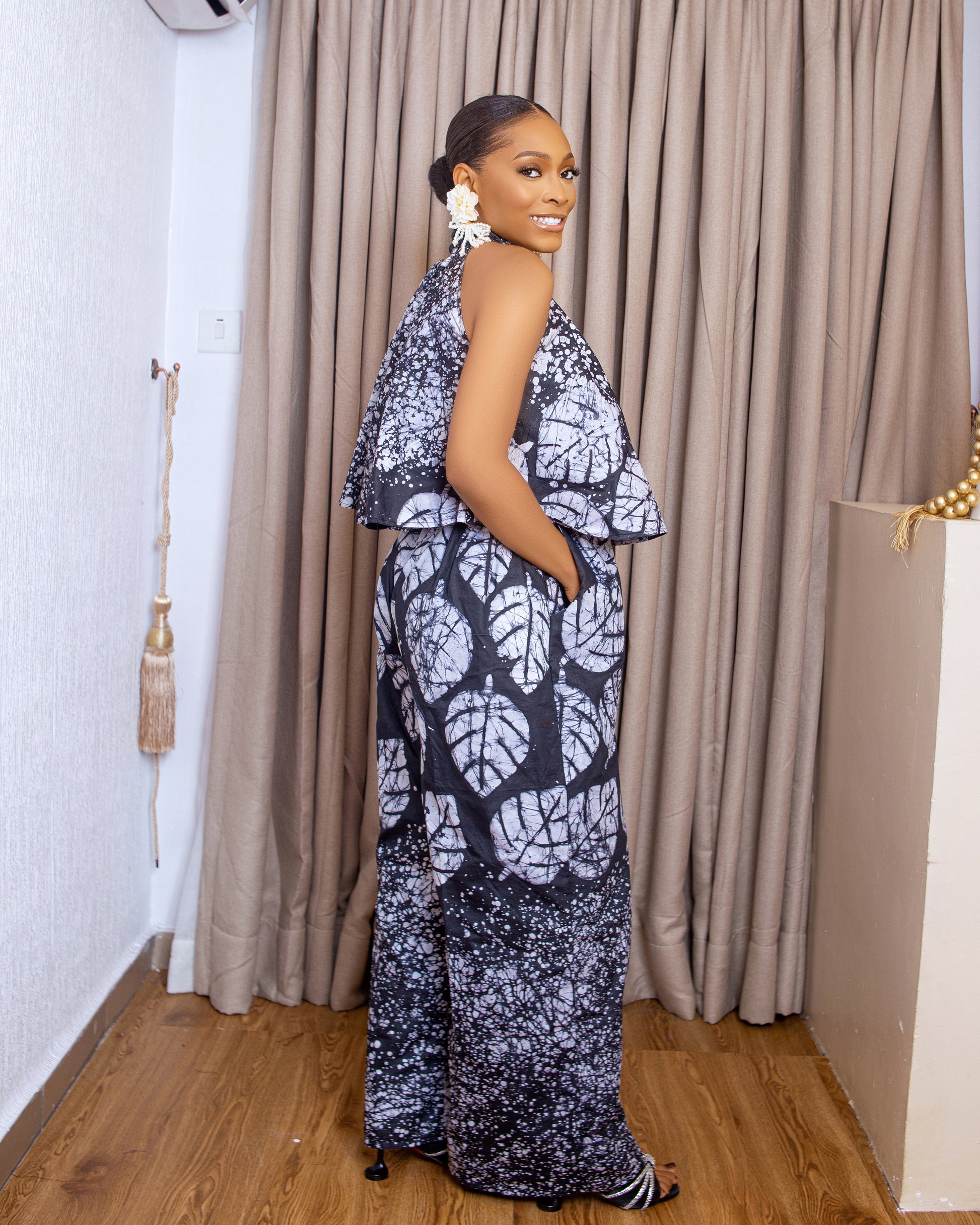 Two-piece set made of palazzo pants, crop flared sleeveless blouse made of hand dyed cotton fabric